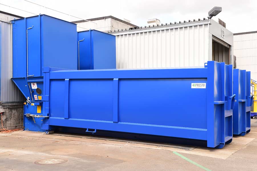 Die PRESTO Schneckenverdichter pressen Wertstoffe oder Abfälle unter höchstem Druck in den angekoppelten Behälter, und das nahezu geräuschlos. Der dabei vollzogene Zerkleinerungsprozess optimiert den Befüllungsgrad.