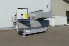 Een horizontaal geplaatste persplaat die elektrohydraulisch aangedreven wordt, pers het materiaal samen. Zo is de doorlopende toevoer van de machine gewaarborgd en is de integratie in het productieproces gegarandeerd.